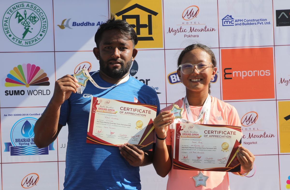 काठमाडौं । नेपाल नम्बर वान प्रदीप खड्का र शिभाली गुरुङले होटल मिस्टिक माउन्टेन ग्रान्ड ओपन टेनिस प्रतियोगिताको सिंगल्स उपाधि शनिबार जितेका छन् ।