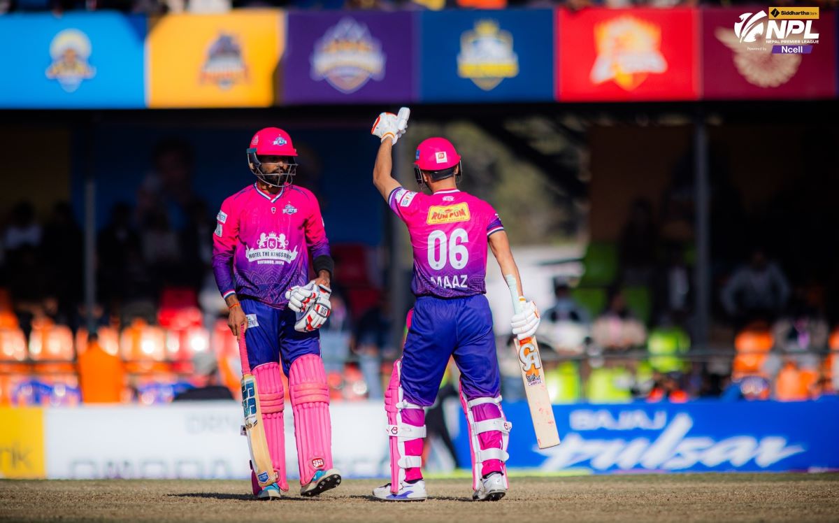 कप्तान कुशल मल्ल ३० रन र अमरसिंह रौटेला एक रनमा अविजित रहेका थिए । बलिङमा जनकपुरका लागि अनिल शाह, माज सदाकत, रुपेश सिंह र जोन निकोल लोफ्टी इन्टनले समान १/१ विकेट लिएका थिए ।