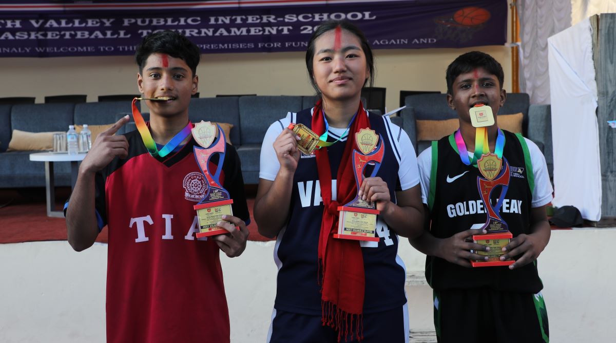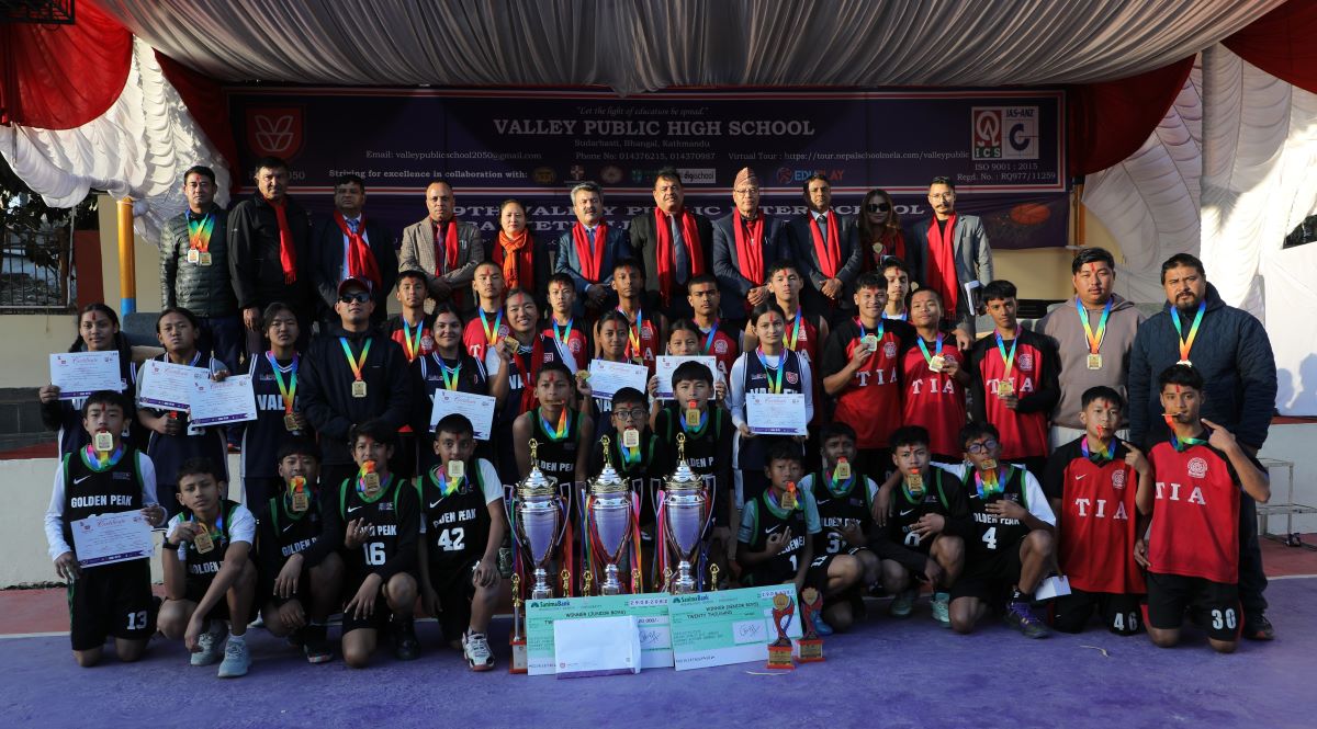 काठमाडौं । आयोजक भ्याली पब्लिक, टीआईए र गोल्डेनपिकले १९ औं भ्याली पब्लिक कप अन्तरविद्यालय बास्केटबल प्रतियोगिताको उपाधि सोमबार जितेका छन् । भ्याली पब्लिक सिनियर गर्ल्स, टीआईए सिनियर ब्वाइज र गोल्डेनपिक जुनियर ब्वाइजमा च्याम्पियन बने ।
