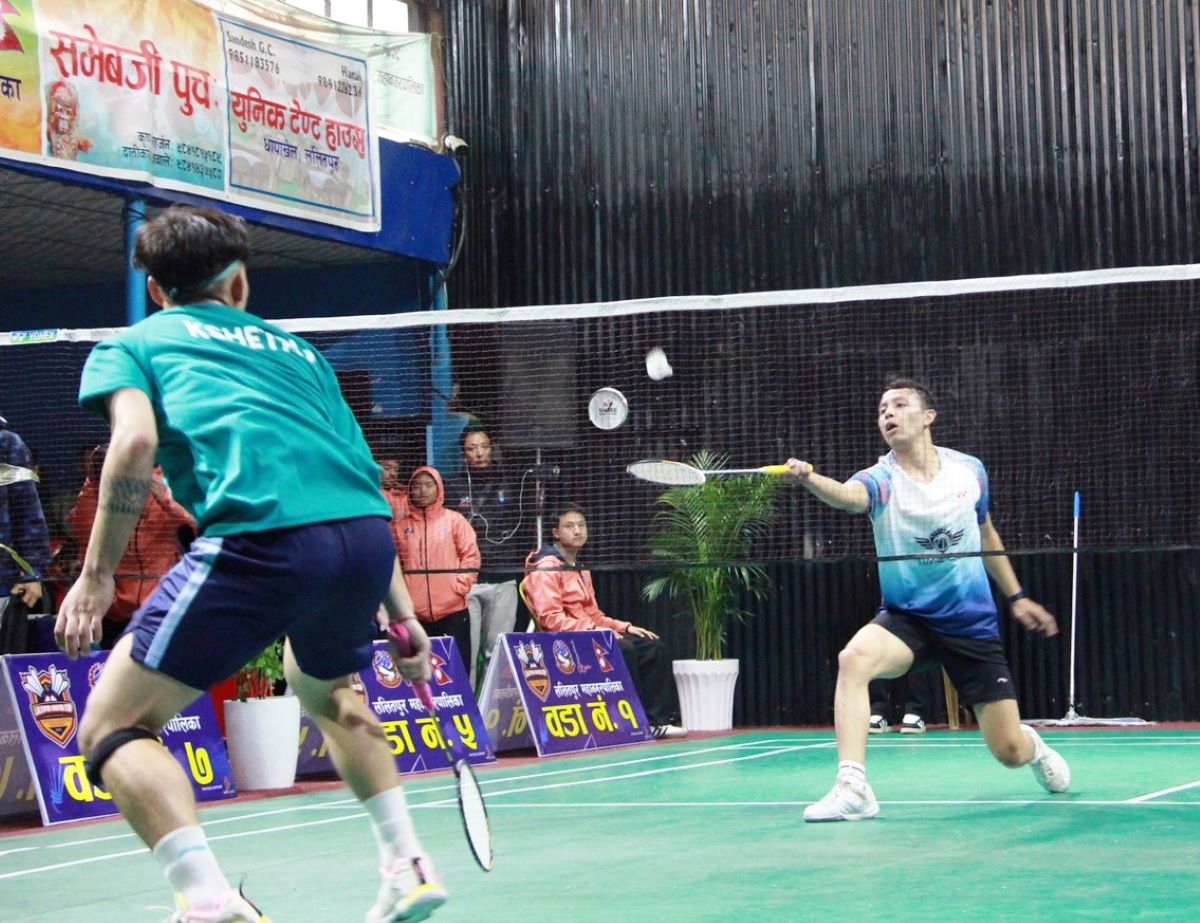 काठमाडौं । ललितपुरमा जारी चौथो ललितपुर मेयर कप राष्ट्रिय ब्याडमिन्टन प्रतियोगिता २०८२ को दोश्रो दिन भएको पुरुष एकल तर्फको खेलमा सप्तरीका बिष्णु कटुवाल र नेपाल पुलिसका सुनिल जोशी प्रिक्वाटरफाईनलमा प्रवेश गरेका छन् । प्रिक्वाटर प्रवेश गर्ने क्रममा कटुवालले पुलिसका भविश थापालाई २१–१६, २१–१२ को सोझो सेटमा तथा जोशीले आर्मीका बिवेक चौधरीलाई १५–२१, २१–१२, २५–२३ को कठिन जित निकाले ।