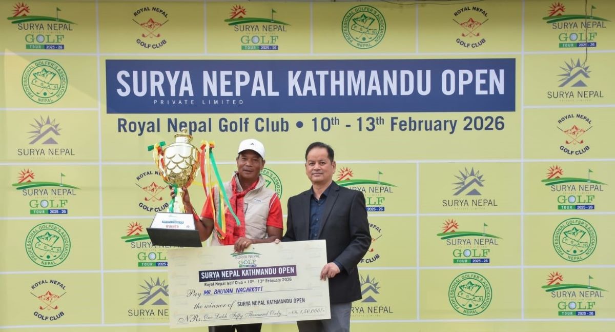 काठमाडौं । सूर्य नेपाल गल्फ टुर २०२५–२६ अन्तर्गतको चौथो प्रतियोगिता सूर्य नेपाल काठमाडौं ओपनको उपाधि भुवन नगरकोटीले जितेका छन्। आज इभन–पार ६८ खेलेका उनले समग्रमा ६–अन्डर २ सय ६६ सहित उपाधि जितेका हुन्।