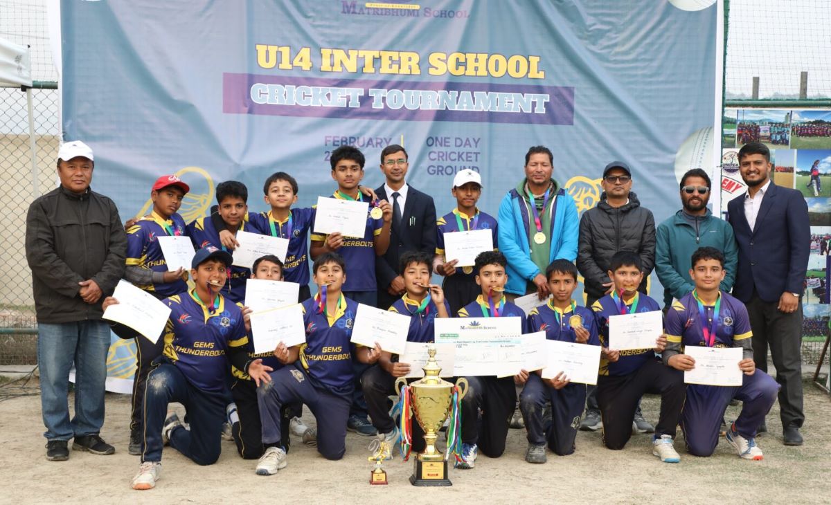 काठमाडौं । अपराजित रहँदै जेम्सले प्रथम मातृभूमि अन्तरविद्यालय यु–१४ टी १० क्रिकेट प्रतियोगिताको उपाधि शनिबार जितेको छ । सानोठिमीस्थित मातृभूमि स्कुलद्वारा आयोजित प्रतियोगिताको फाइनलमा जेम्सले अक्षरालाई ३ रनले पराजित गर्यो ।