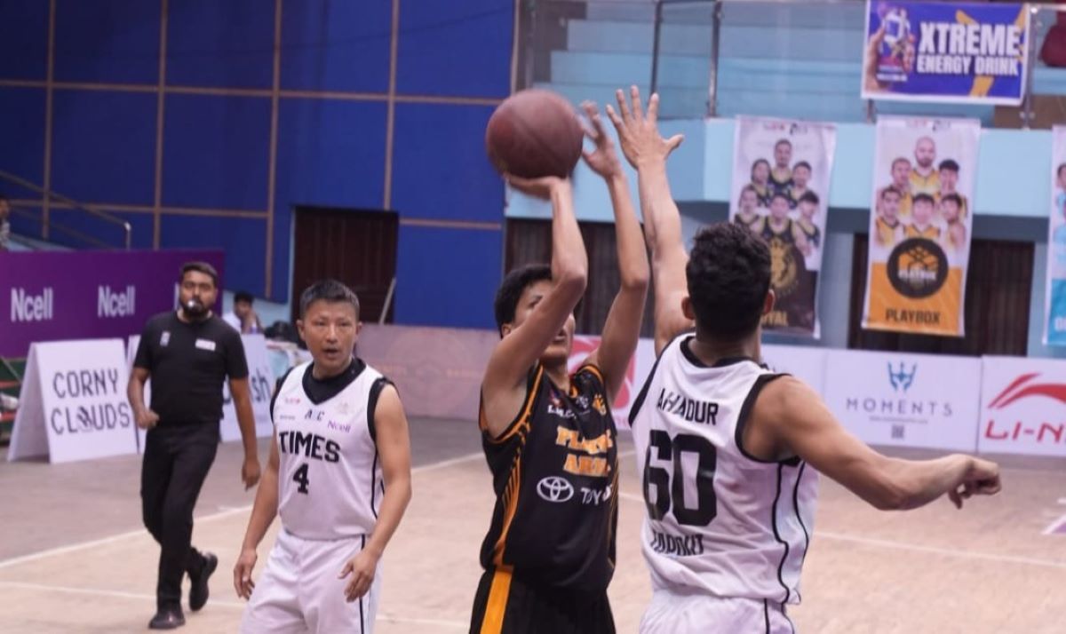 त्रिपुरेश्वरस्थित दशरथ रंगशालाको कभर्डहलमा धिहीबार चएको खेलमा टाईम्सले प्लेबक्स एरेनालाई ८५–७३ ले पराजित गरेको हो ।