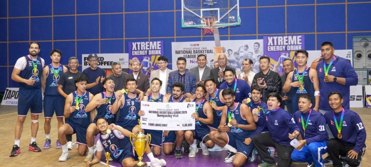 काठमाडौं । गोल्डेनगेट बास्केटबल क्लबले हिमालयन जाभा बास्केटबल लिग (एचजेएनबीएल) २०२६ को उपाधि जितेको छ । त्रिपुरेश्वरस्थित दशरथ रंगशाला कभर्डहलमा शनिबार भएको फाईनलमा विभागीय टोली त्रिभुवन आर्मी क्लबलाई ९५-७४ ले पराजित गर्दै गोल्डेनगेट च्याम्पियन बनेको हो ।