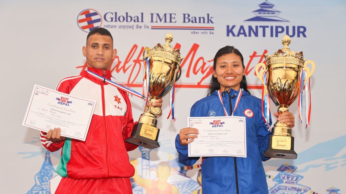 काठमाडौं । त्रिभुवन आर्मी क्लबका राजन रोकाया र धादिङकी सन्तोषी श्रेष्ठले कान्तिपुर हाफ म्याराथनको मुख्य विधा २१.१ किलोमिटरको हाफ म्याराथनको उपाधि जितेका छन् । पुरुषतर्फ राजनले कान्तिपुर हाफ म्याराथन जितेको पहिलो पटक हो भने महिलातर्फ सन्तोषीले लगातार दोस्रो पटक जितेकी हुन् ।
